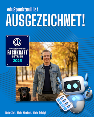 Die Auszeichnung als FACHKRAFT Betrieb 2025 unterstreicht, dass edu2punktnull nicht nur ein Beratungsunternehmen ist, sondern eine Bewegung – hin zu einem Mittelstand, der Technologie menschlich denkt.